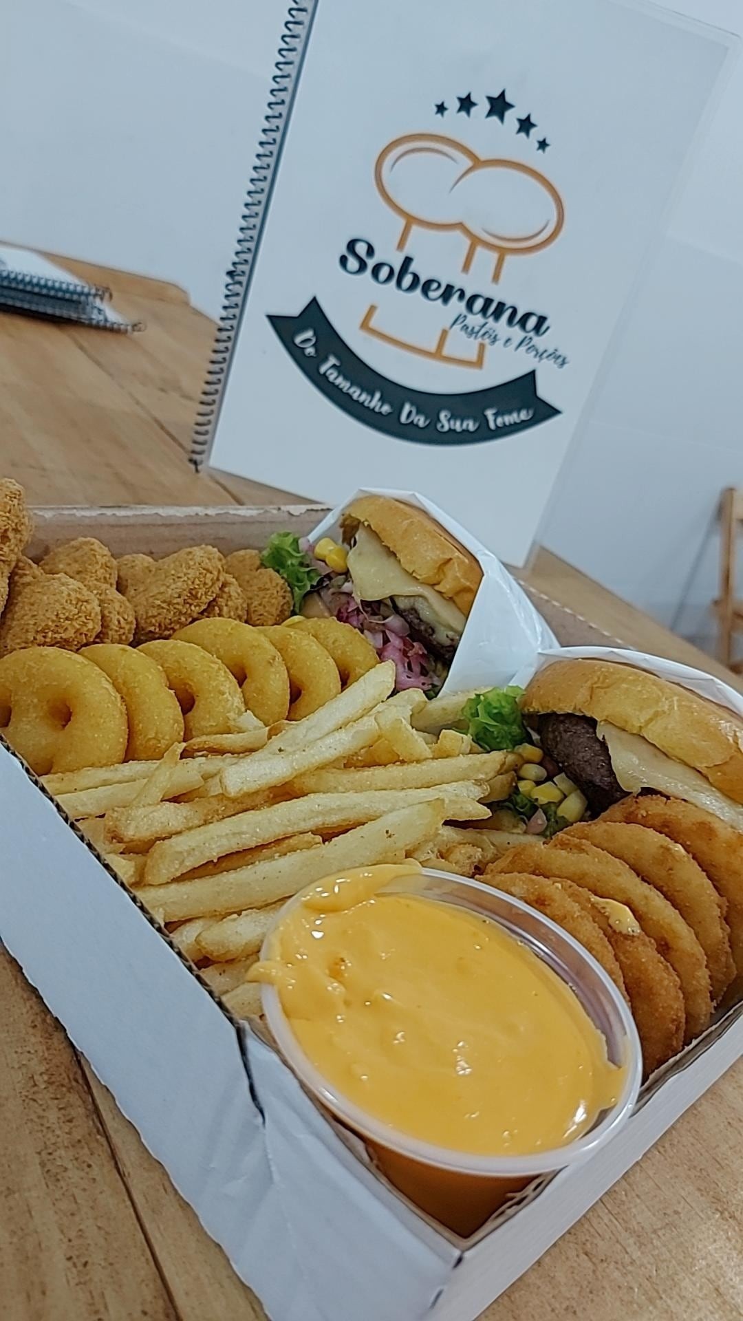 2 Burguer Salada, Burguer Salada - Pão / Hamburguer / Queijo Mussarela / Presunto / Alface / Tomate / Milho / Pepino / Vinagrete, Nuggets, Batata Smile, Batata Frita, Cebola Onions, Creme de Cheddar, Não é possivel fazer alteração nos itens do combo