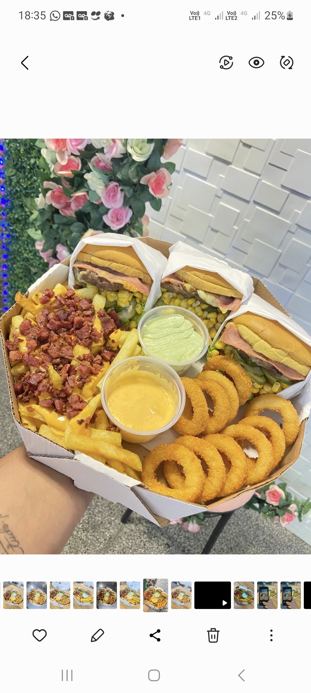 3 Burguer Salada, Fritas com Cheddar e Bacon, Acompanhamento de Sua Preferencia, Potinho de Cheddar, Potinho de Maionese Caseira