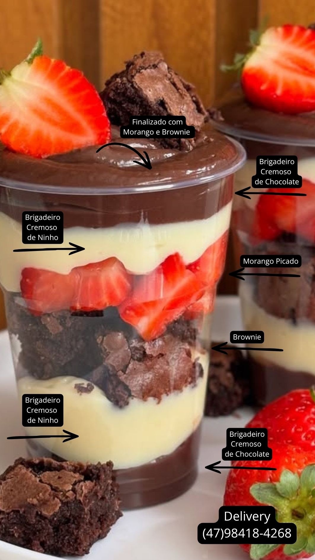 Copo da Felicidade, 300ml com Tampa Bolha, Brownie Fresquinho, Brigadeiro Cremoso, Montado na Hora