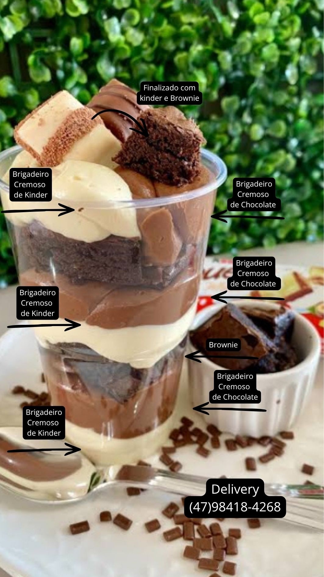 Copo da Felicidade, 300ml com Tampa Bolha, Brownie Fresquinho, Brigadeiro Cremoso, Montado na Hora